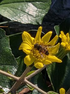 庭のツワブキにミツバチが・・・