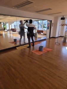 今日は午後から焼津市のアイサービスさんに窓ガラス清掃と鏡清掃をお願いして、教室がピカピカになりました。