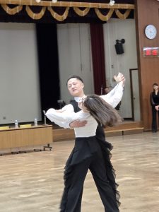 スローフォックストロットのフィガーを踊りながら、ポジション変化やフットワーク等の指導がありました。
